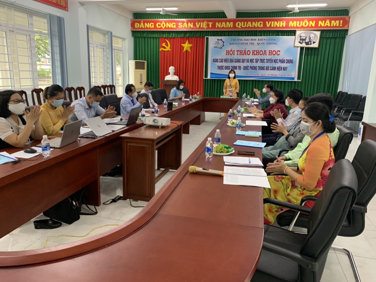 Thực hiện Kế hoạch số 12/KH-KCTQP ngày 16 tháng 12 năm 2021 của Khoa Chính trị-Quốc phòng, ngày 31 tháng 3 năm 2022 Khoa Chính Trị-Quốc phòng đã tổ chức hội thảo khoa học cấp khoa chủ đề “Nâng cao hiệu quả giảng dạy và học tập trực tuyến học phần chung thuộc khoa Chính trị-Quốc phòng trong bối cảnh hiện nay”nhằm chia sẻ, trao đổi, thảo luận những giải pháp để nâng cao hiệu quả đối với việc dạy và học trực tuyến các môn học thuộc khoa quản lý.